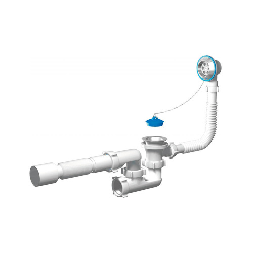 Сифон для ванны для подключения к канализации комплектуется гибкой трубой 40*50 мм