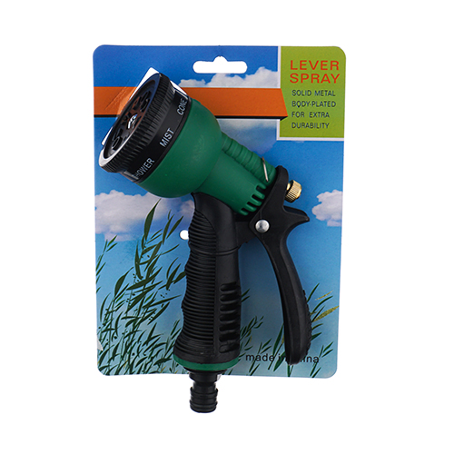 Разбрызгиватель-пистолет 8 режимов, прорезиненная ручка, латунный регулятор, с адаптером, 1/100