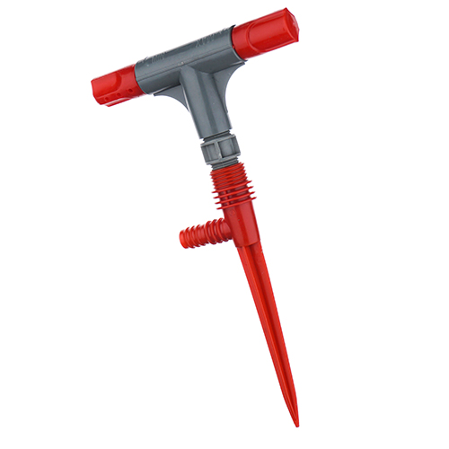 Вращающийся фонтан-разбрызгиватель с двумя регулируемыми "лопастями". Закрепляется на пластиковой основе типа "колышек". Круговой разбрызгиватель сочетают в себе неподвижное основание и вращающуюся верхнюю рабочую часть, где размещены разбрызгивающие головки.