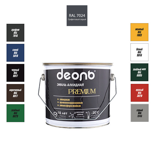 Антикоррозионная глянцевая эмаль 2,7л PREMIUM, ДЕОЛЬ, RAL 7024 графит, 1/4