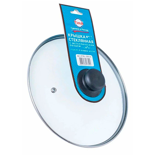 Крышка стеклянная термостойкая с металлическим ободом и пароотводом (низкая) "TIMA" (Россия)