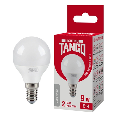 Лампочка светодиодная E14 9Вт 4000К TANGO LED G45 шарик, 10/100