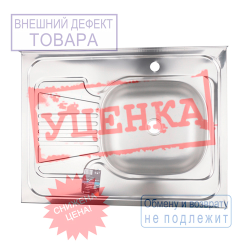 Мойка нерж. прямоуг 60*80см 0,4мм правая накладная, глуб. чаши 12см, УЦЕНКА, вмятины, царапины