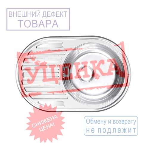 Мойка нерж. овал 50*77см 0,6мм прав вып 3 1/2, глуб чаши 16см, с сифоном, с креплением MIXLINE УЦЕНКА, царапины