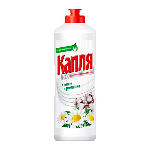 Средство для посуды Капля VOX. Эффективно удаляет любые загрязнения даже в холодной воде. Густая формула обеспечивает экономичный расход. Легко и полностью смывается водой.