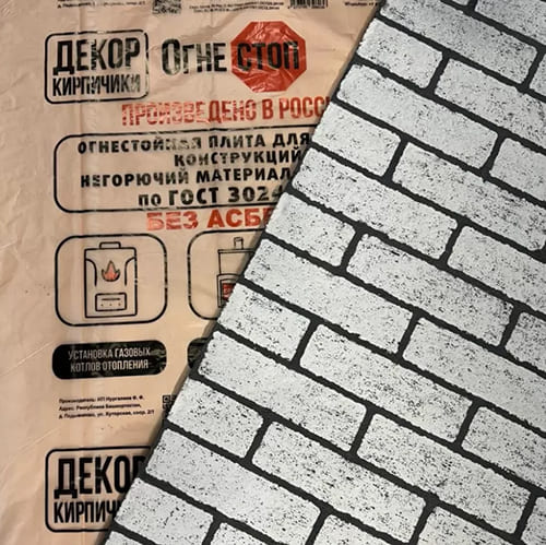 огнеупорная армированная Декор Кирпичики короед БЕЛЫЙ влагостойкая ОгнеСТОП 1200х800х9 ШИРОКАЯ, 2/1