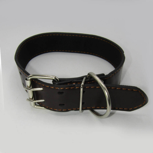 Ошейник для собак - изделие для фиксации животного. Двойной, прошитый, выполнен из высококачественной, плотной кожи и брезентовой ленты. Прост в применении, безопасен. Длина изделия удобно регулируется. Для собак крупных пород.