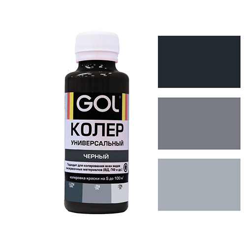 Паста колеровочная универсальная "GOL" (100 мл) применяется для колерования лакокрасочных материалов (красок, эмалей, лаков, шпатлевок, затирок, штукатурок, гипсовых смесей, пропиток для древесины, грунтовок), кроме составов на основе масел и применением пасту необходимо перемешать, хорошо встряхнув флакон. Ввести пасту в