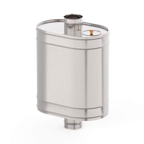 Бак для бани устанавливается прямо на дымоход печи. Диаметр трубы должен быть 115 мм. За счет тепла дымохода вода в этом баке нагревается быстро и равномерно. Бак изготовлен из нержавеющей стали, поэтому уход за ним не потребует от вас излишних усилий.