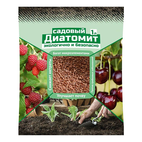 Диатомит — это экологически чистое удобрение органического происхождения, он не имеет запаха, не выделяет вредных веществ, полностью безопасен для животных и людей. Богат микроэлементами, снижает нитраты, улучшает почвуи отлично справляется с грибковыми заболеваниями. Диатомит — осадочная горная порода с высоким содержанием кремния, состоящая преимущественно из панцирей диатомовых водорослей. Благодаря способности накапливать и отдавать влагу диатомит улучшает свойства садовой почвы, делая ее более легкой, воздухопроницаемой и влагоемкой.