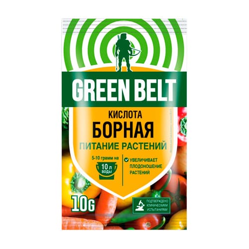 В составе содержит микроэлемент бор, в котором растения нуждаются в течение роста и развития. Борная кислота способствует большей урожайности, повышению сахара, витамина С и каротина в плодах, увеличению цветения цветочных культур.