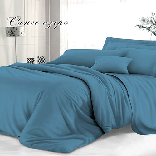 Комплект постельного белья Sateen De Luxe евростандарт, гладкокрашеный, наволочка 50х70 см, синее озеро