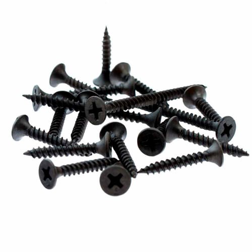 Саморезы имеют потайную головку с крестообразным шлицем PH2, острый наконечник и частую резьбу. Производятся из углеродистой стали с последующим оксидированием для защиты от коррозии.