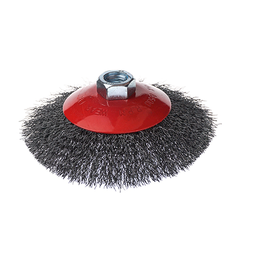 Щетки конические диаметра 125 мм с посадкой М14 на УШМ с гофрированным (волнистым) ворсом предназначены для средней тяжести зачистных работ по изделиям из нержавеющих сталей и цветных металлом, используются в основном для работы в труднодоступных местах, стыках, переходах поверхностей.