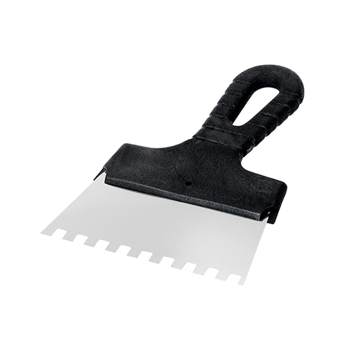 Шпатель зубчатый с полотном шириной 150 мм применяется для нанесения, выравнивания клея при укладке плитки, мозаики и т.д. Рабочее полотно изготовлено из нержавеющей стали и устойчиво к образованию коррозии. Эргономичная пластмассовая рукоятка с рельефной поверхностью делает работу более комфортной. Упругое рабочее полотно быстро принимает первоначальную форму даже после сильных изгибающих нагрузок. Зубчатое лезвие с шагом 8 мм и наклонная рукоятка облегчают нанесение и выравнивание составов.