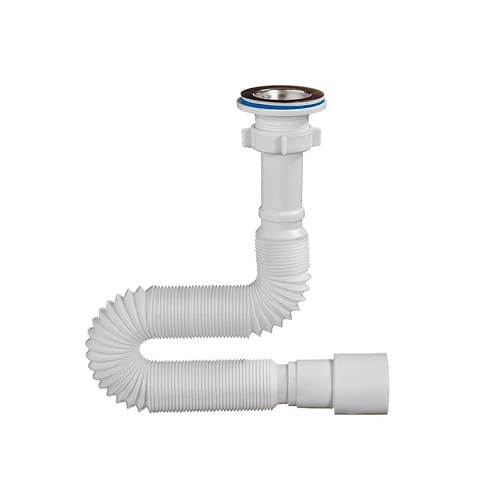 Гибкая гофрированная труба предназначена для слива воды из мойки или раковины. Она герметично соединяет сифон с канализационной сетью.