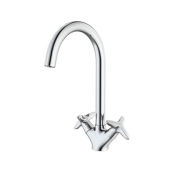 Смеситель для кухни Copter привлекает внимание оригинальным, стильным исполнением ручек, плавными линиями и зеркальным блеском.