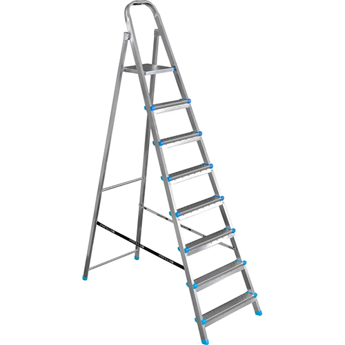 Стремянка оцинкованная  изготавливается из стального прямоугольного профиля с гальваническим покрытием. Имеет широкую рабочую площадку, высокую дугу безопасности с пластиковой полочкой для инструментов. Ступени смонтированы с одной стороны и имеют рельефный профиль, что делает подъем и спуск более безопасным. Данная модель компактна и эргономична, при хранении занимает мало места, проста в использовании, отлично подойдёт, если требуется осуществлять работы на высоте – на стройке, дома, или на даче.