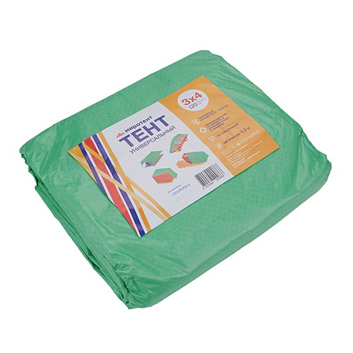 Тент строительный полиэтилен, 3м*4м, зеленый, 120г/м2, шаг люверса 50 см, 1/1