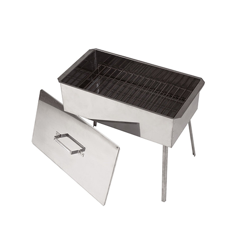 - на ножках, крышка, 1 решётка, поддон для сбора жира;