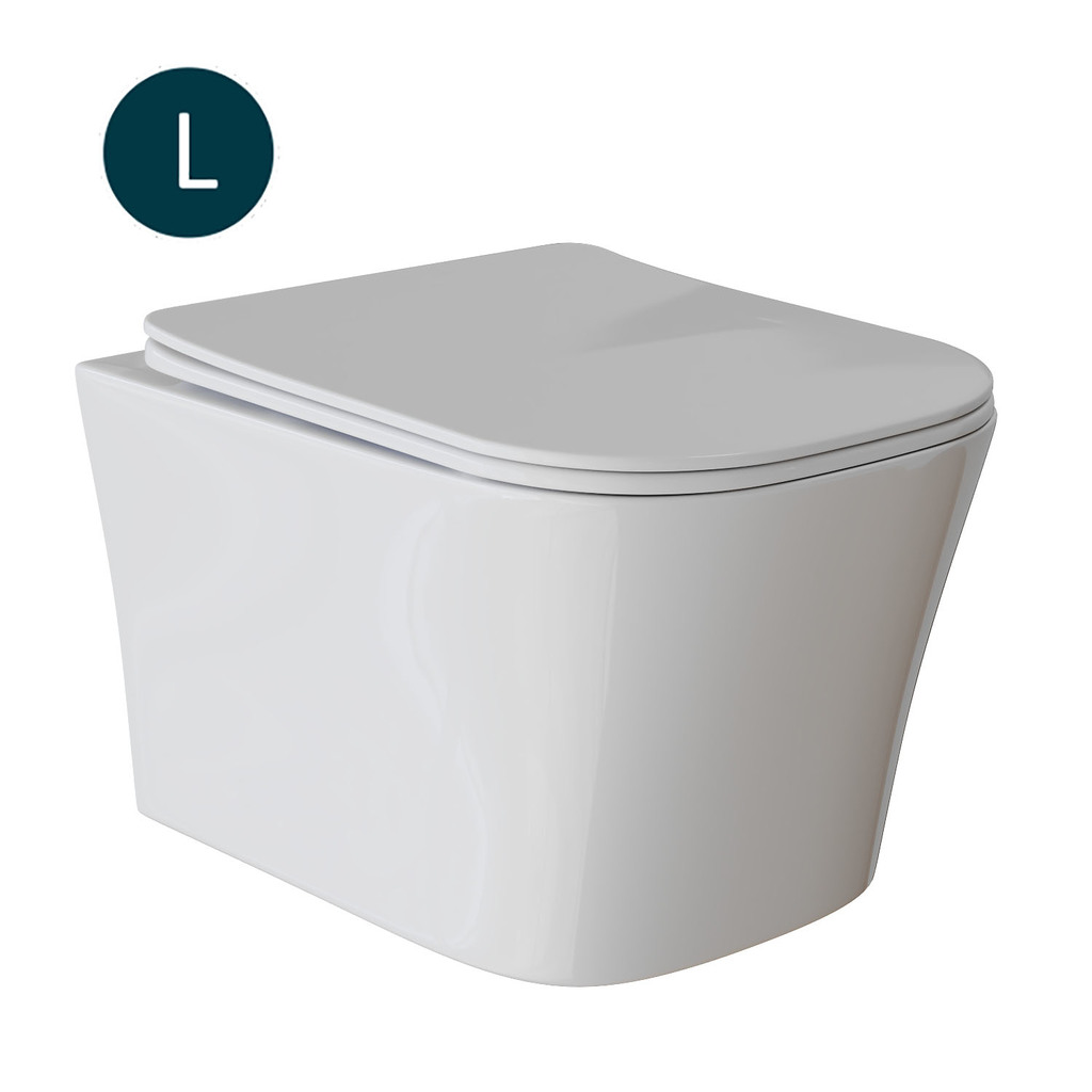 Унитаз подвесной безободковый WAVE PROMO сид. дюропласт, м/л, быстр, БЕЛЫЙ глянец, L