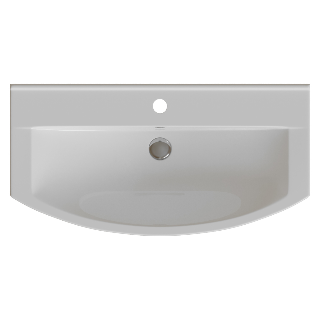 Округлая передняя часть мебельного умывальника выступает за пределы тумбы. Глубокая чаша создает удобство и комфорт при использовании.