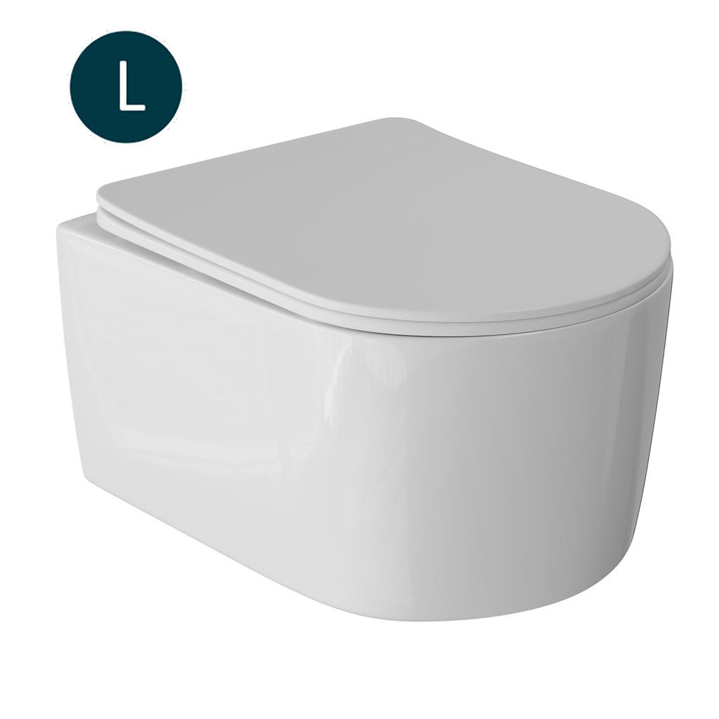 Унитаз подвесной безободковый WAVE SOLO сид. дюропласт, м/л, быстр, БЕЛЫЙ глянец, L
