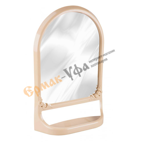 Зеркало имеет необычную форму - прямоугольную у основания и овальную в верхней части. Конструкция зеркала имеет полку, что позволяет разместить на ней ванные и другие принадлежности. Благодаря цветовым решениям, зеркало подойдет под любой интерьер, как в ванной, так и в других комнатах. В комплекте есть все необходимые крепления для установки зеркала.